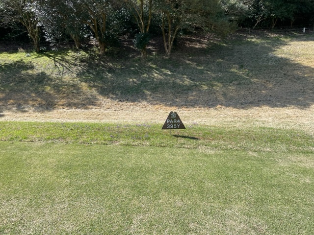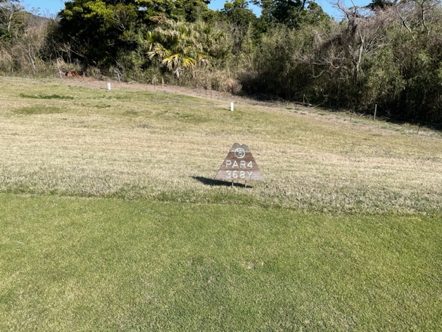 5番638yロングは、ドライバーはまずまず。3wもまずまず。3打目も3wで打つも届かず。ここからショート。寄らず入らずダボ。