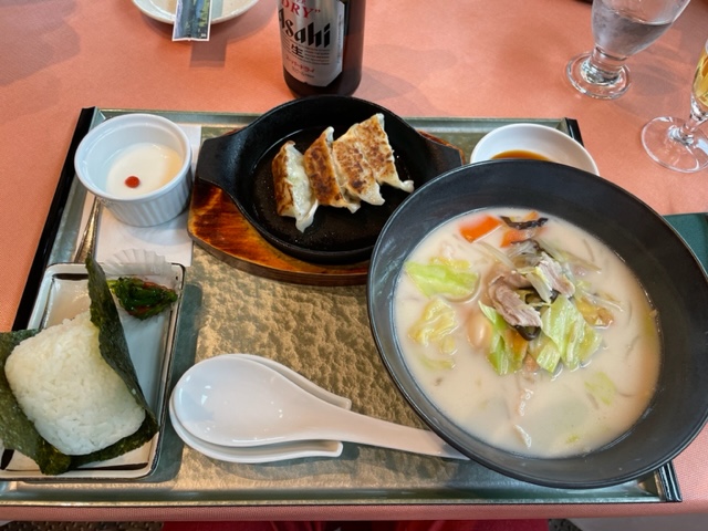 ランチはチャンポン麺とおにぎりとギョーザセットを食す。まずまず。