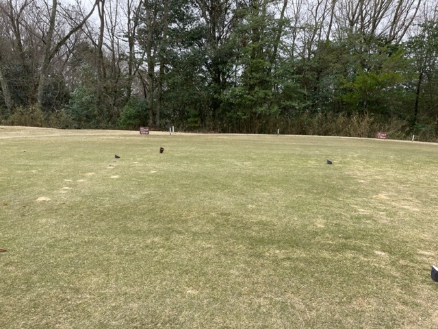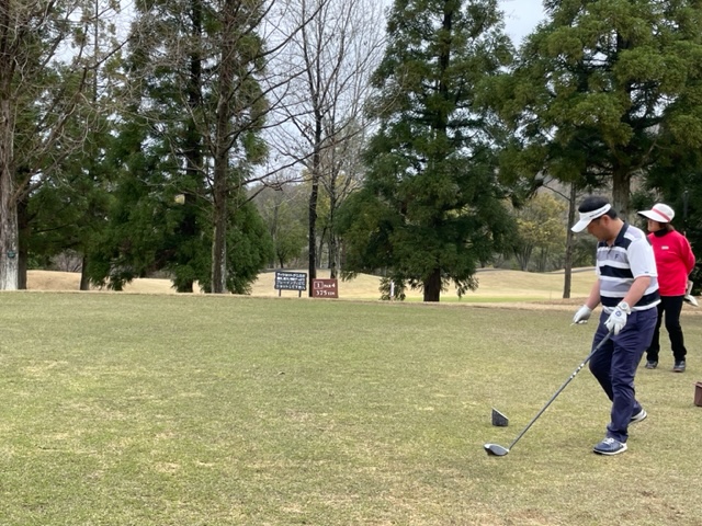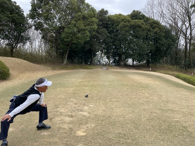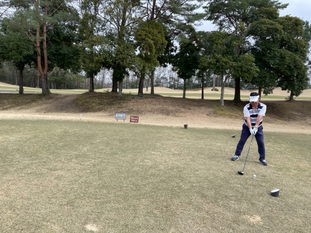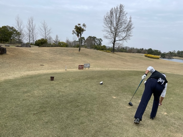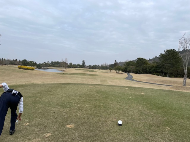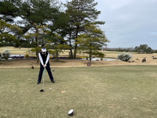 時間になり、パターを少し転がしてアウトから。今日は白ティで進行します。キャディさんはIさんです。