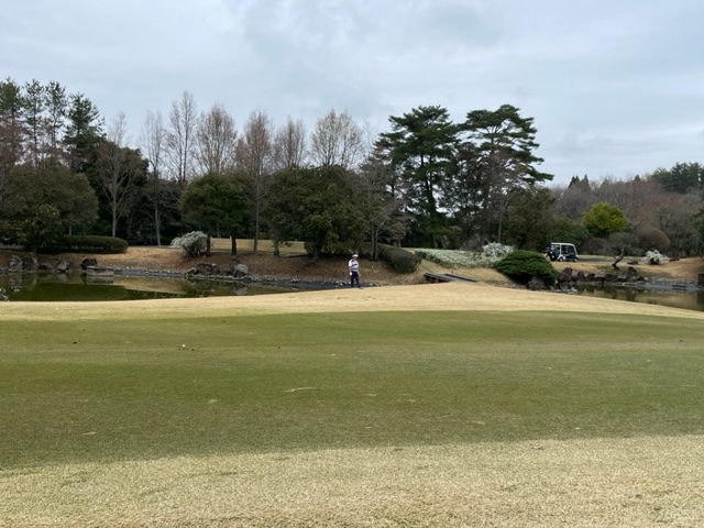 10番342yミドルは、ドライバーは竜巻球でお池にジャブン。ドロップエリアから、4アイアンで3オン。ボギー。素晴らしいアプでH.Yさんがパー発進。