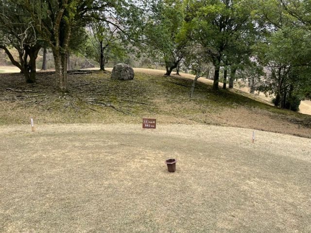 11番381yミドルは、ドライバーはまずまず。6アイアンで打つも左手前へ。寄らず入らず。