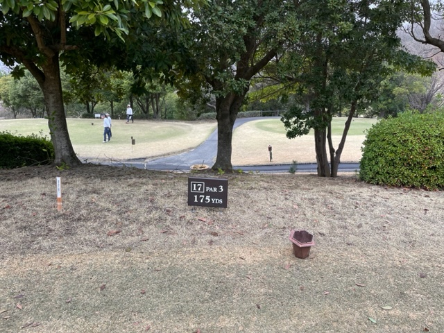 17番166yショートは、6アイアンで打つも左へ。寄らず入らず。