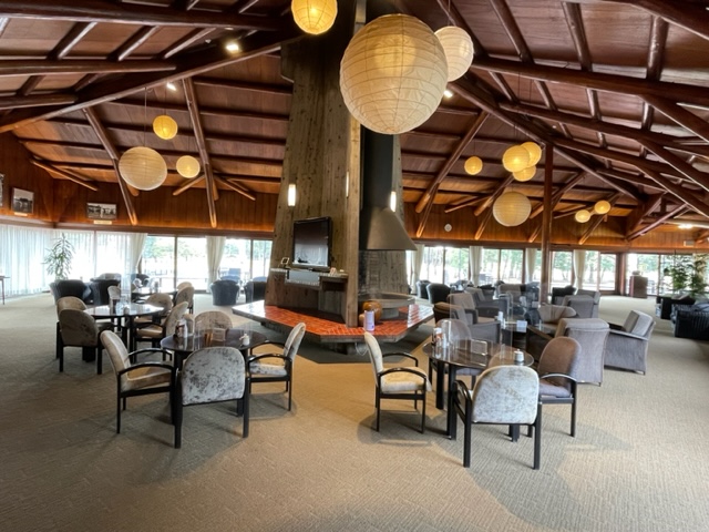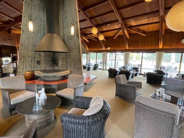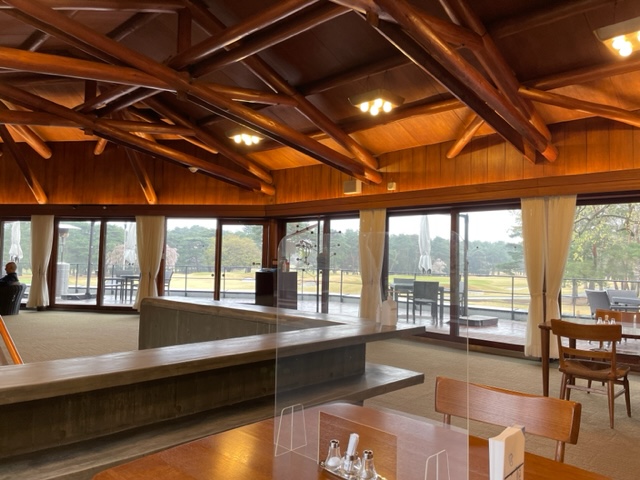 生憎の雨です。クラブハウスに入って、これまた仰天。フロントの位置もハウス内売店も変わっていてお洒落になっています。お手洗いも超綺麗です。