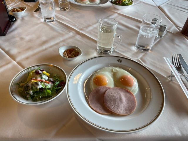 レストランでいつものようにサラダ付きのハムエッグ(440円)とさつま汁(220円)をいただく。安くて味も最高。ホント我孫子のレストランの味と価格は超激最高であります。