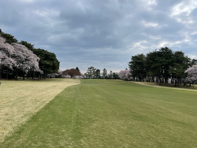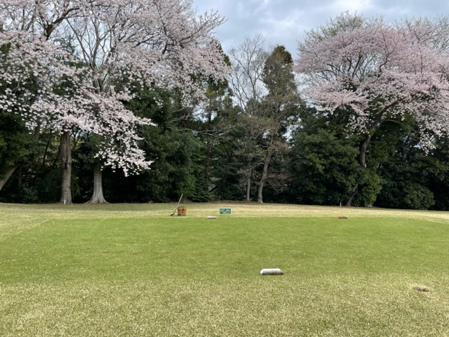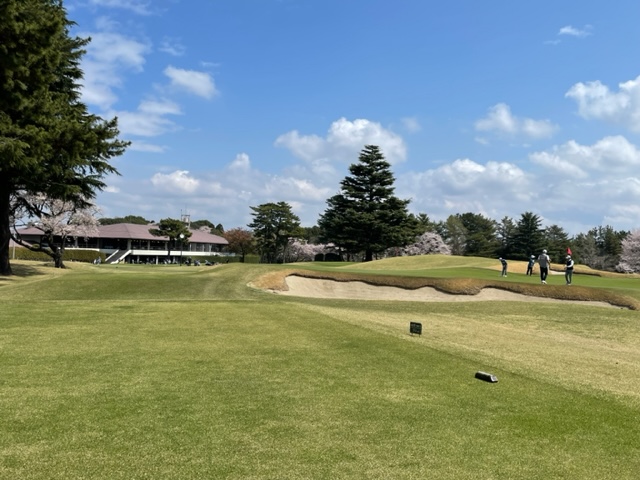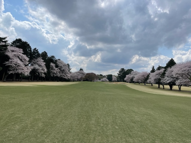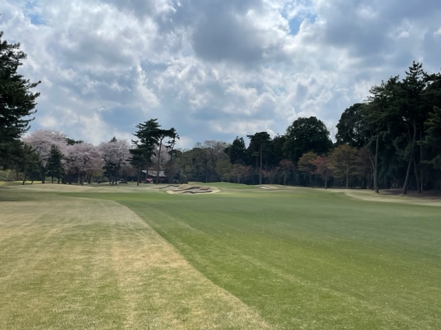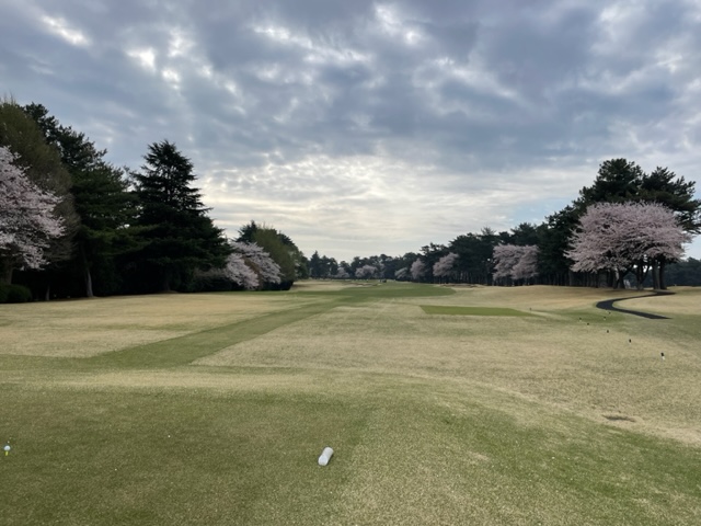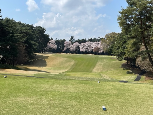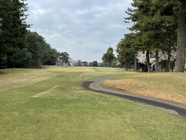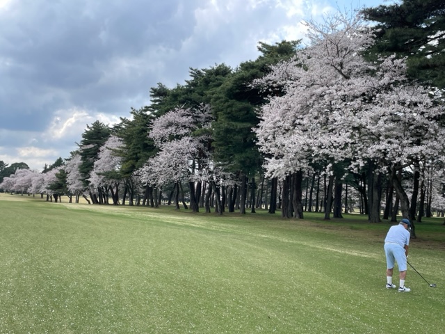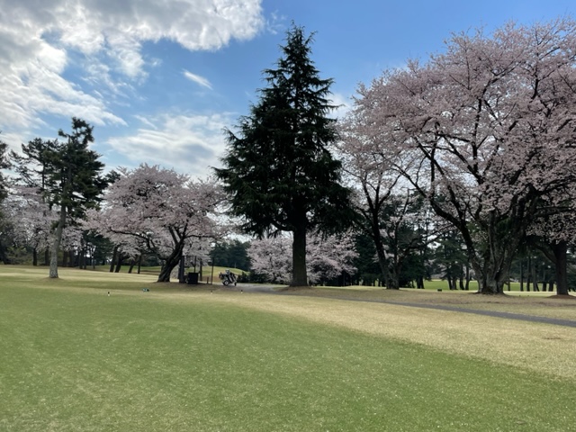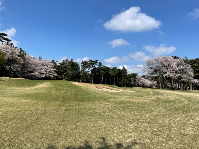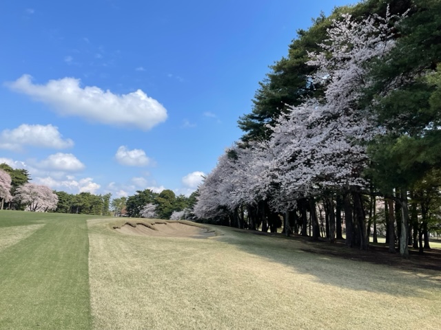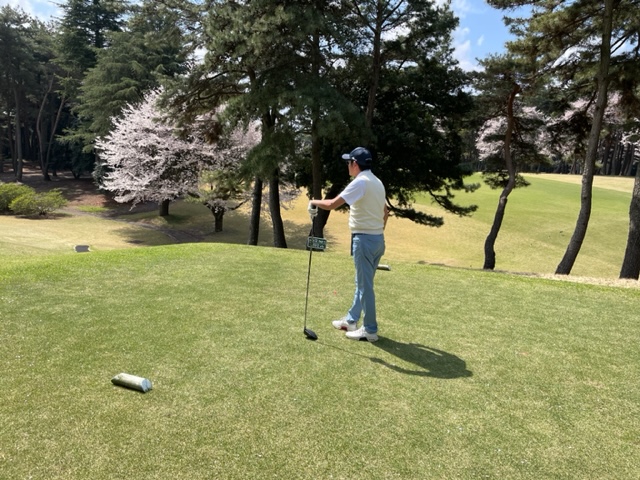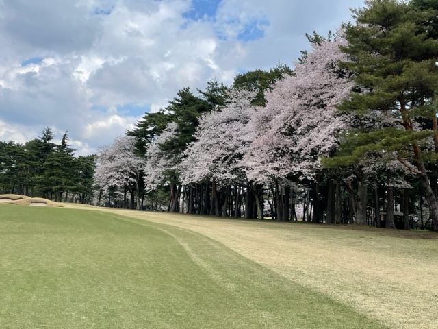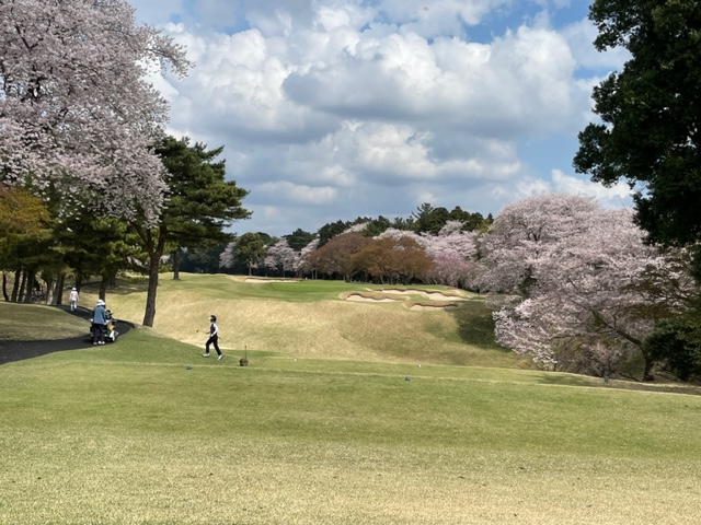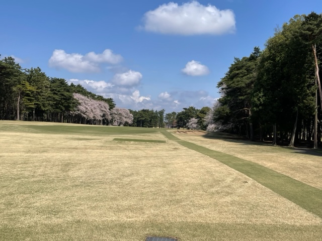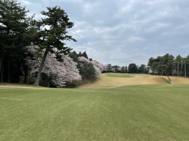 10番493y左ドッグの桜が綺麗なロングは、ドライバーは狙いよりちょいと左でバンカーイン。25度で打つもどダフリ。残り220yから3wで打つも左手前のバンカーイン。ここからナイスアウトで1.3mに4オン。で、これを外す。アホ。しっかり3オンのS.Tさんが無難にパー。