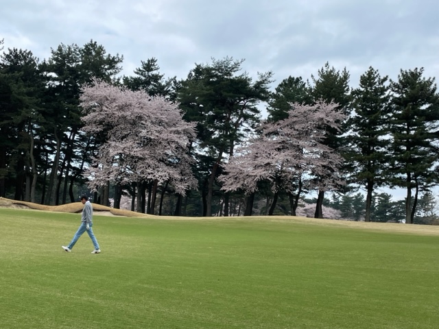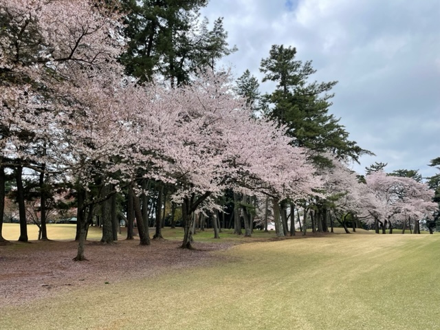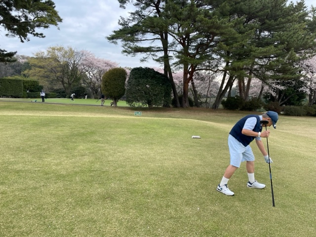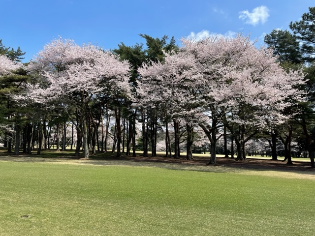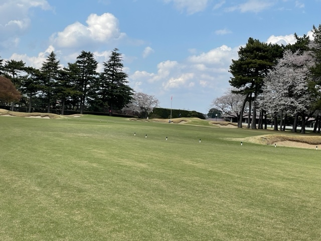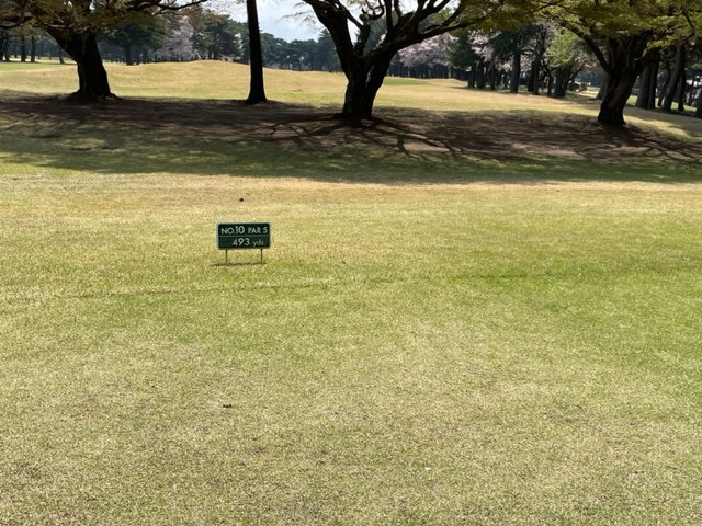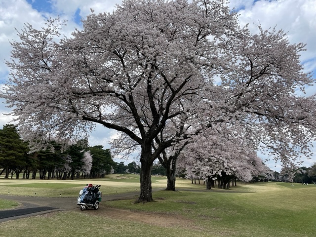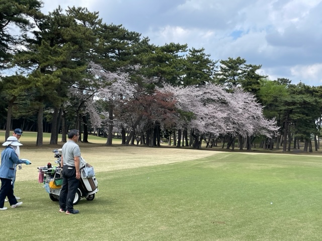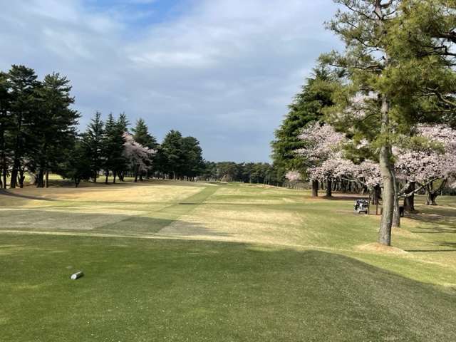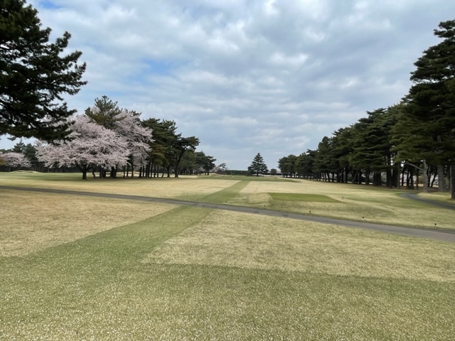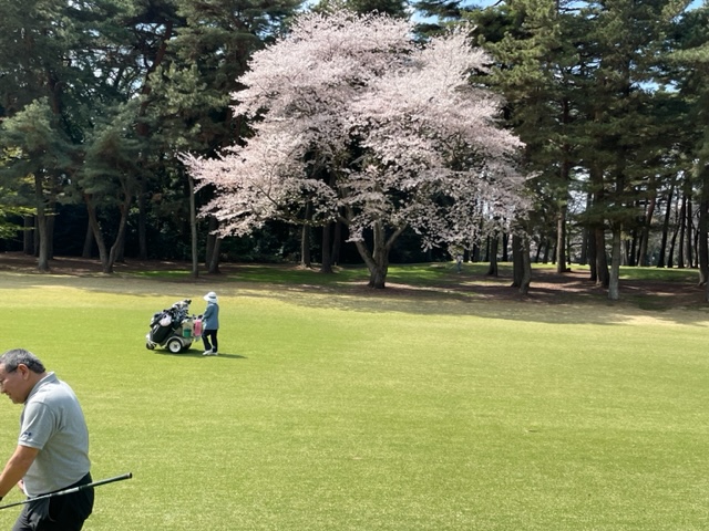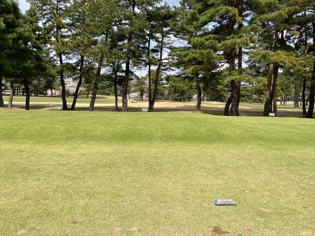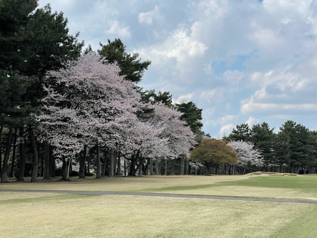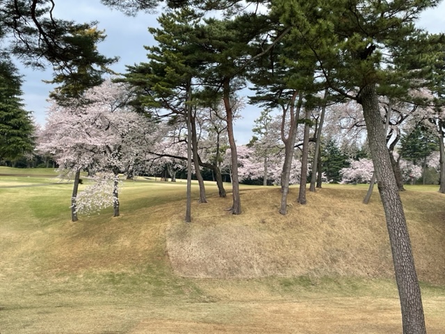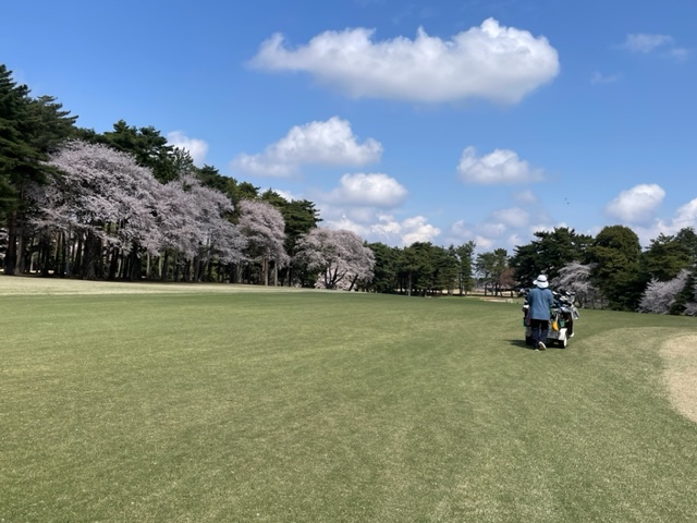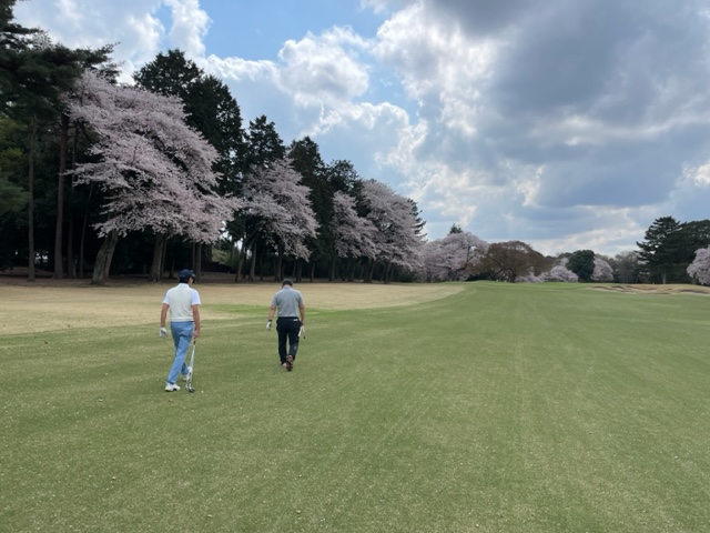 10番493y左ドッグの桜が綺麗なロングは、ドライバーは狙いよりちょいと左でバンカーイン。25度で打つもどダフリ。残り220yから3wで打つも左手前のバンカーイン。ここからナイスアウトで1.3mに4オン。で、これを外す。アホ。しっかり3オンのS.Tさんが無難にパー。
