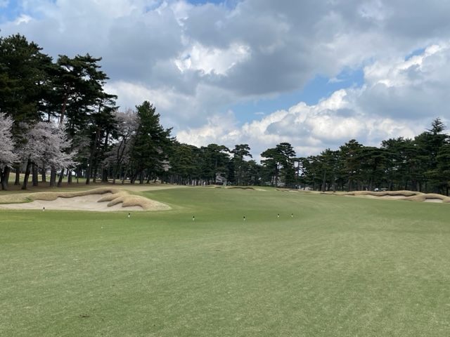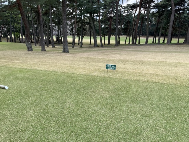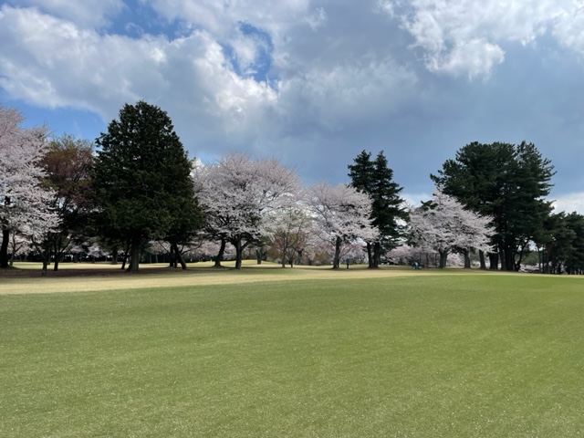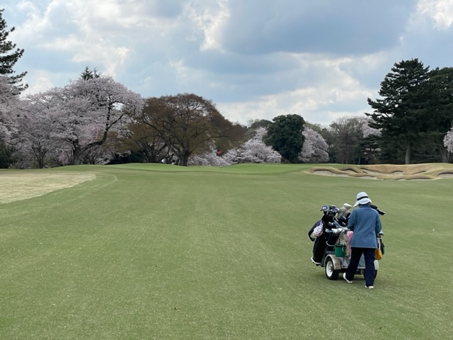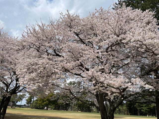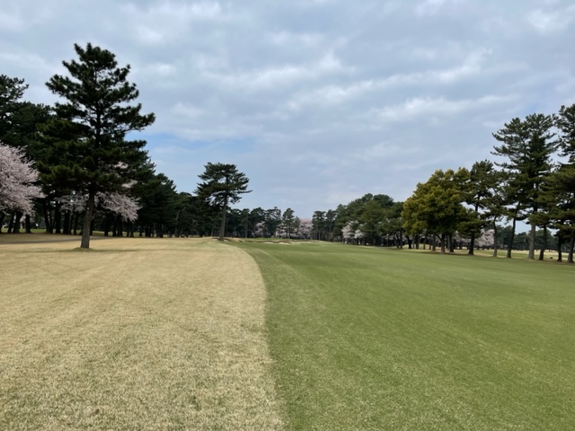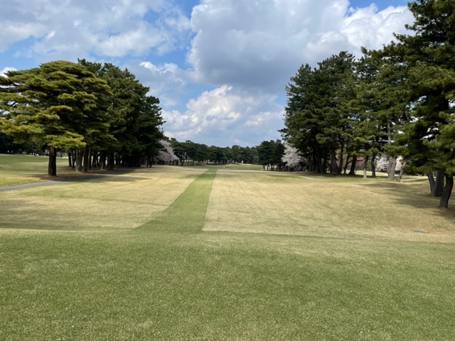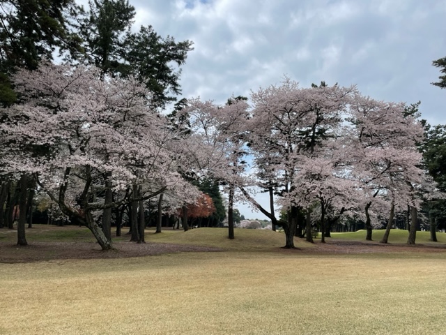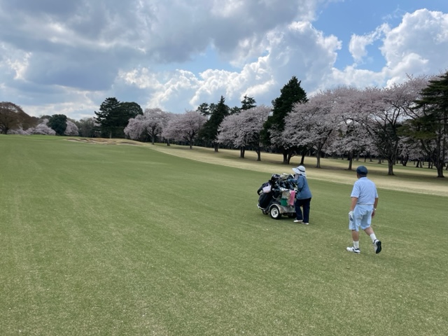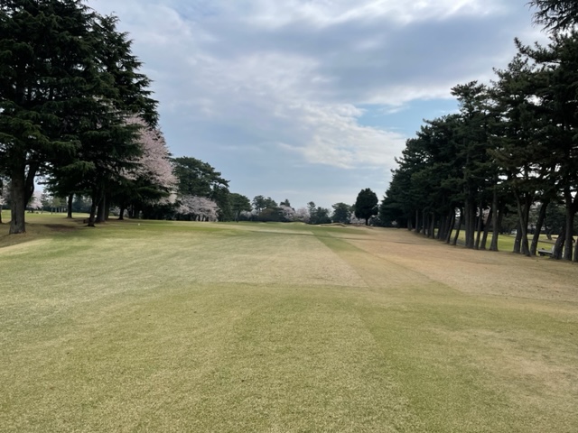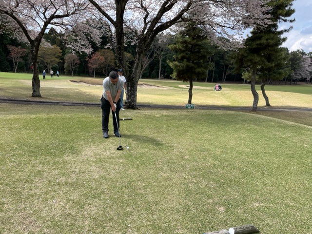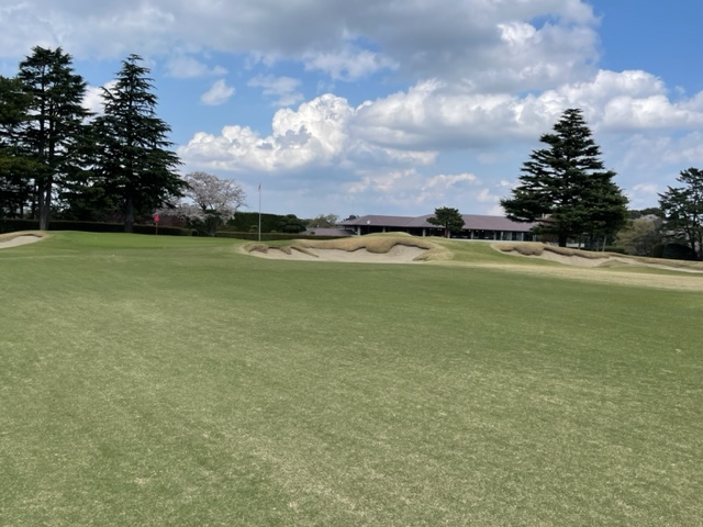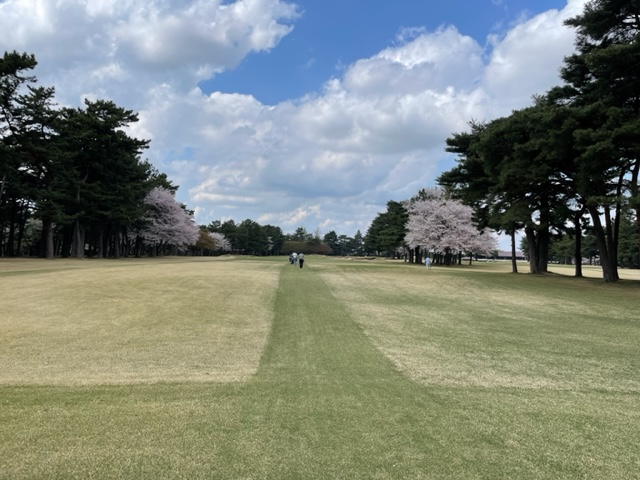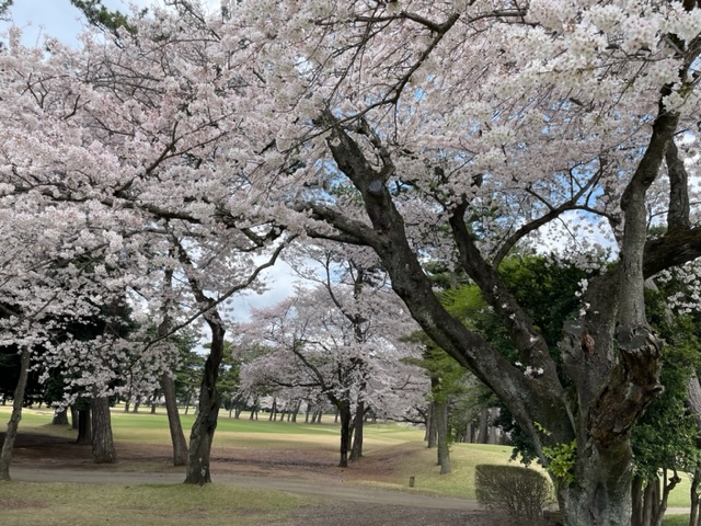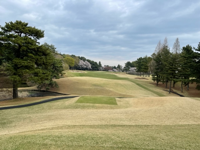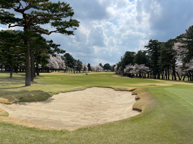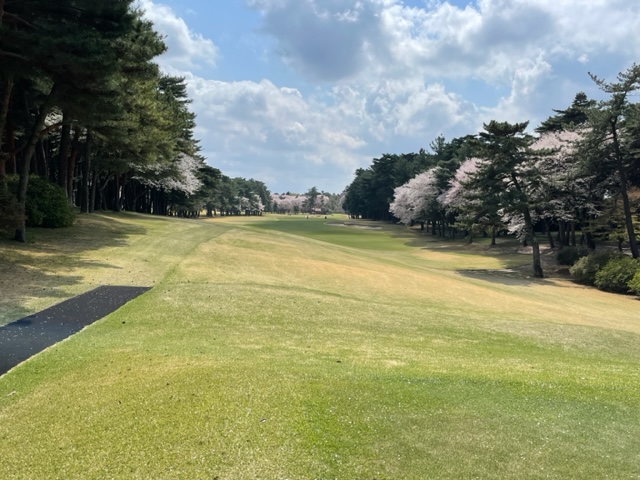10番493y左ドッグの桜が綺麗なロングは、ドライバーは狙いよりちょいと左でバンカーイン。25度で打つもどダフリ。残り220yから3wで打つも左手前のバンカーイン。ここからナイスアウトで1.3mに4オン。で、これを外す。アホ。しっかり3オンのS.Tさんが無難にパー。
