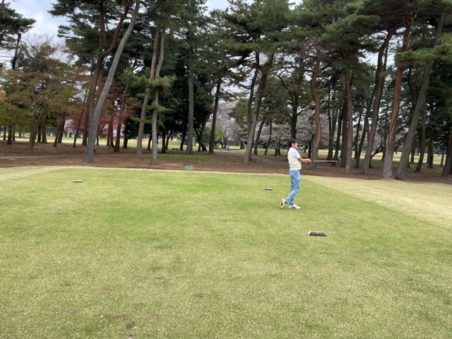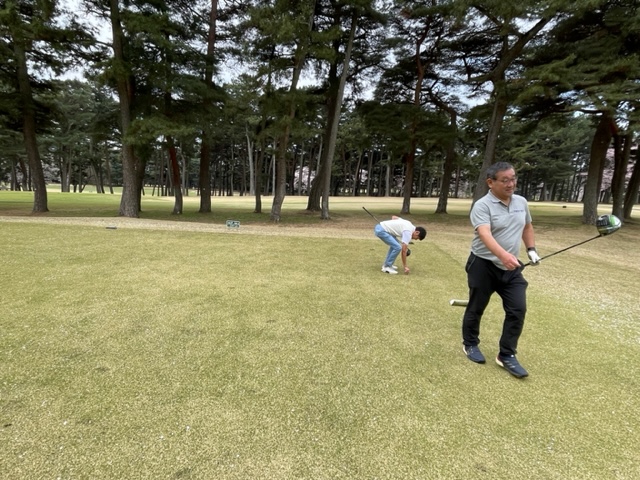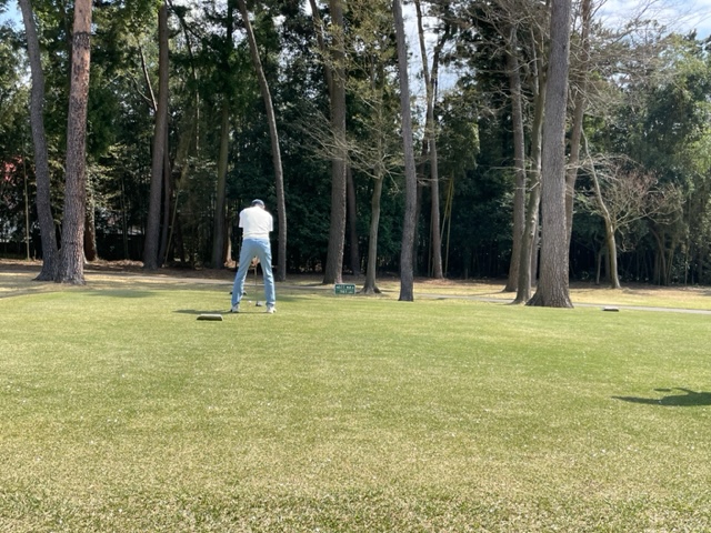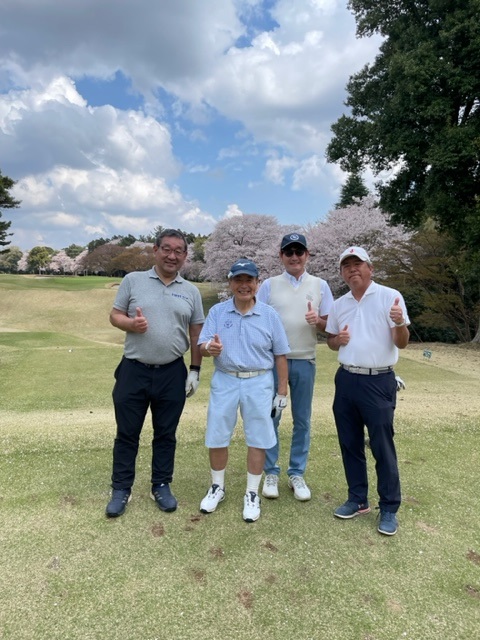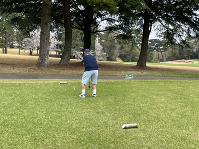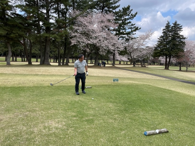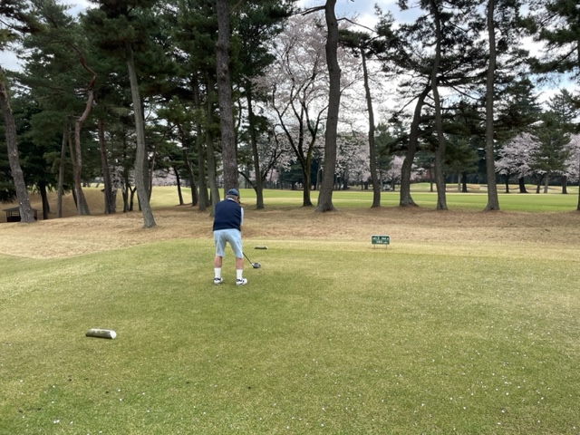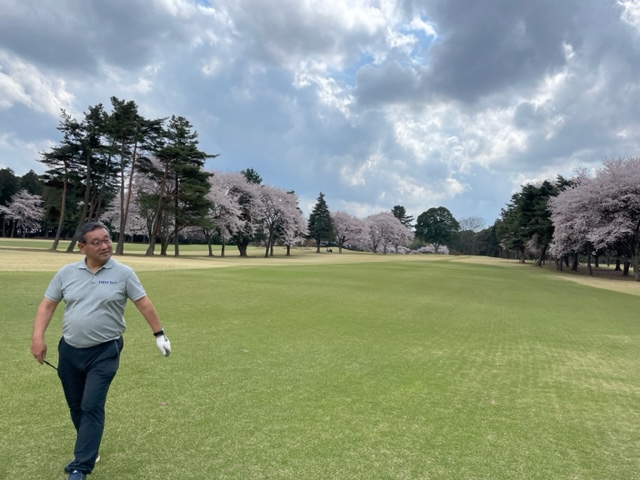 今日はロータリアンの大先輩の世界のMの会長M.Mさんと久しぶりにご一緒させていただきます。今日は花見ゴルフですから白ティから。