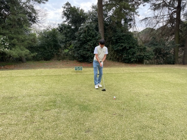 3番155yショートは、7アイアンでのフェードが完璧。入ったと思ったが、ピンに当たって右へ。60センチを沈めてナイスバーディ。