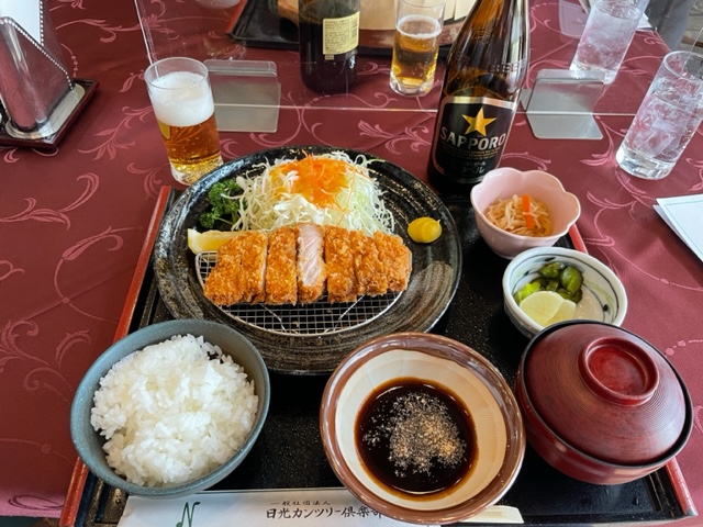 ランチは、、、、これまたサービスでした。私はとんかつ定食をいただく。まずまずでしたが、先日の東京倶楽部のが美味過ぎた(笑)。