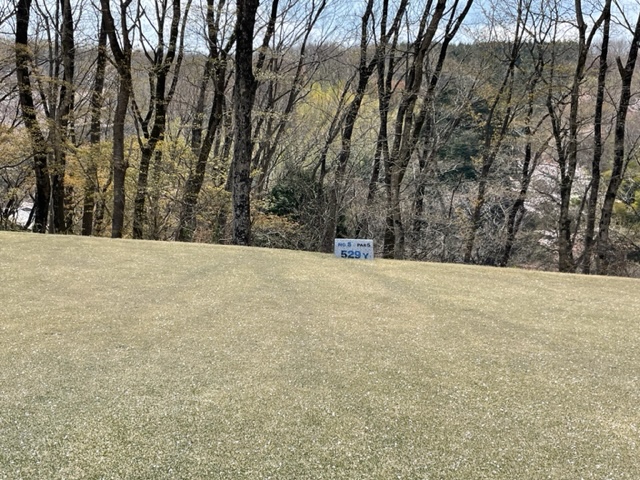 5番529yロングは、ドライバーはまずまず。3wがショボ。3打目を3uで打つも右へ。4打目が乗らず。ダボ。