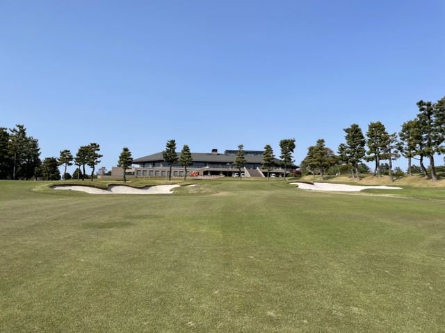 18番364yミドルは、ドライバーは右のクロスバンカーイン。PWで打つもショート。なんとか2mに寄せるもパターが入らず。