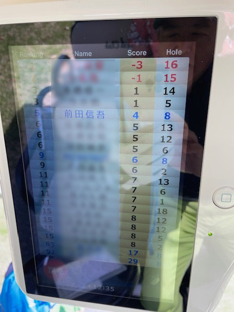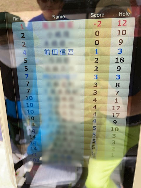 3番391yミドルは、ドライバーはナイス。9アイアンで5mに2オン。今度は放り込んでナイスバーディ。完全に上位に入ってきた。ここはメルウェイとテツさんも2オンでお二人が残念パー。