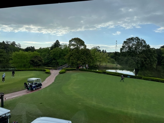 16番368yミドルは、オナーのK.Sさんが池に入れたのを見た2番打者のK.Tさんがリーチという声を発した。3番打者の私もリーチを発してみた。私はクロスバンカーイン。セカンドを5アイアンで打つもなんと出ず。やっとのボギー。で、素晴らしい1、2打でK.Tさんが3mに2オン。で、これを放り込んでナイスバーディ。スゲー。私にも大量節が舞い込んできた~。あまり馴染みがないルールでしたが、ま、ナイスだったということで。