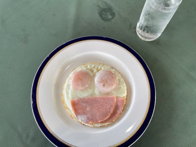 着替えてレストランに行き、ハムエッグを食しながら、独りミーティングです。で、食した後に、私は豚汁定食(豚汁・納豆・香の物)をオーダーしようとして「そこに付いている納豆を私は食べられないので例えば玉子など違うものに代えてくれますか?」とお尋ねしたら「納豆を抜くことは出来ますが、玉子を付けるなら別料金となります」とのことでしたので、セコい私はオーダーを止めました。