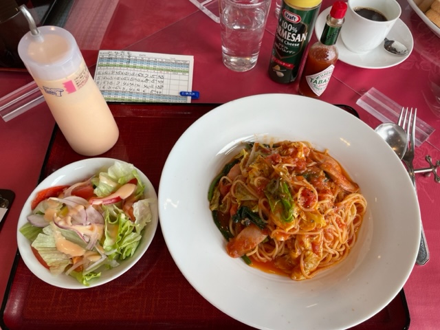 ランチは、今日もパスタを食す。ここしばらくパスタの食べ比べをしてますね。今回の食べ比べは平川←中山←アスレチック←大利根かな。 アウトへ。