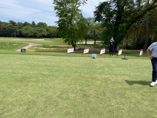 時間になり、パターを転がして西インから。今日はジャパンのT.Mさんが同伴者のお一人です。そして、顧客のK.TさんとT.Eさんとのペアリングです。