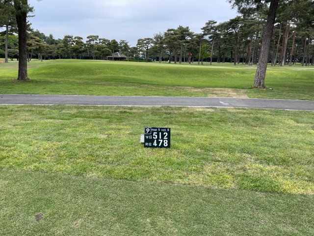9番478yロングは、ドライバーはナイス。3wが真左へ。幸い前が開いていて8アイアンで1.4mに3オン。沈めて今日4個目のバーディ。1.3mに3オンのT.Mさんもバーディで同じく今日4個目のバーディ。