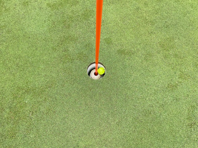 9番513yロングは、ここだけ描写を詳しくします(笑)。ドライバーは左ラフへ。3uで残り102yに。ここからの52度が完璧球。打った瞬間これはいったよ~と声を上げる。するとトントンって球が消えた。やりました。変な言葉ですが今や堂々とショットインイーグル(笑)です。高得点を獲得。