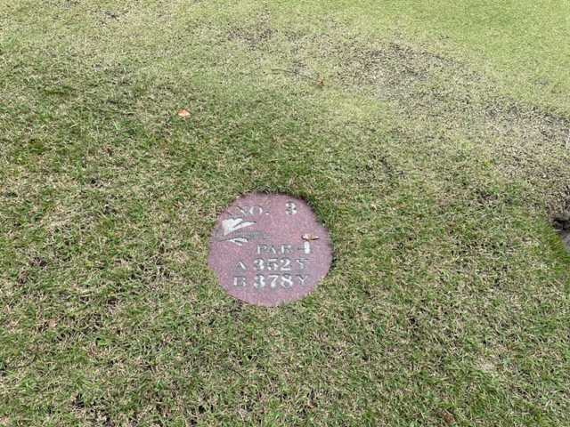 3番352yミドルは、ドライバーは左ラフへ。9アイアンで2mに2オンしたが、残念パー。同じく2オンからT.Kさんも無難にパー。