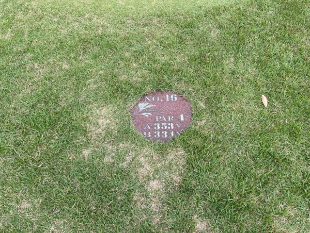 16番353yミドルは、ドライバーはナイス。9アイアンで14mのカラーへ。ここから3パンチ。ガクッ。見事な2オンからT.Kさんが無難にパー。