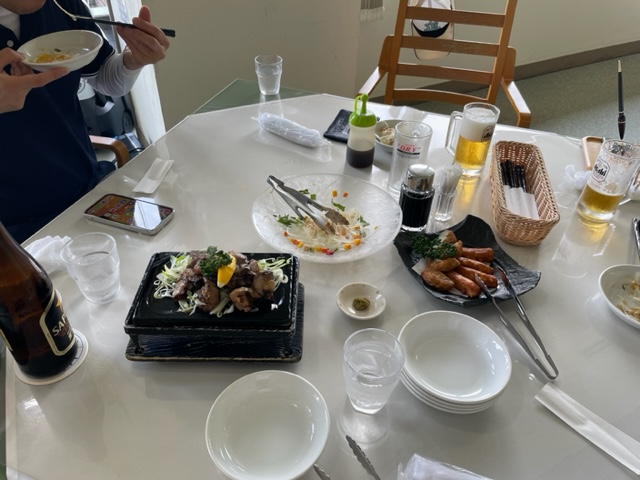 初日の今日は空港から10分の溝辺カントリークラブです。まずは、到着後、レストランで黄金水タイムです。鶏の溶岩焼きが美味しかった。