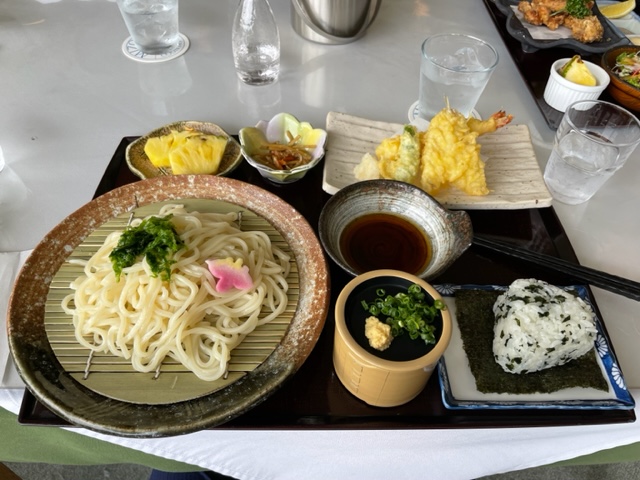 ランチは、天ぷら冷うどんを食す。まずまず。
