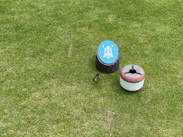 スタート前の茶店でゆっくり過ごし、アウト1番から。今日は急用でJ.Oさんが欠場となられましたので、縁の東京都のM.MさんとR.Nさんとの3サムです。