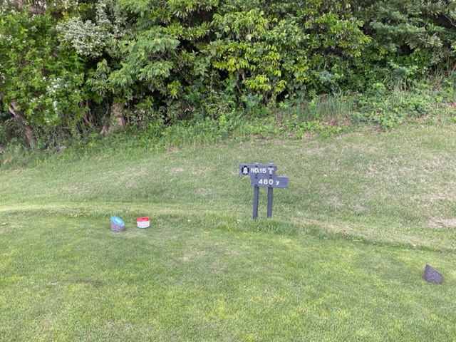15番470yロングは、ドライバーは竜巻球で赤杭イン。残念。ドロップしての3打目はまずまず。4オンのボギー。見事な3オンからM.Mさんが無難にパー。ようこそゴルフ日記へ。