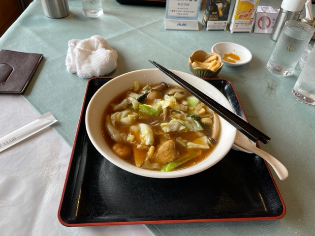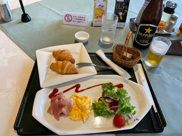 到着時刻は一緒でした。私は着替えてレストランへ。洋定食をいただきます。まずまずでした。洋定食を頼みましたがコーヒーは付いていないのか出て来ませんでした。