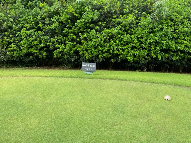 13番362yミドルは、ドライバーは左ラフへ。チョン出し、52度で3オン。ボギー。見事なアプからS.Yさんがパー奪取。
