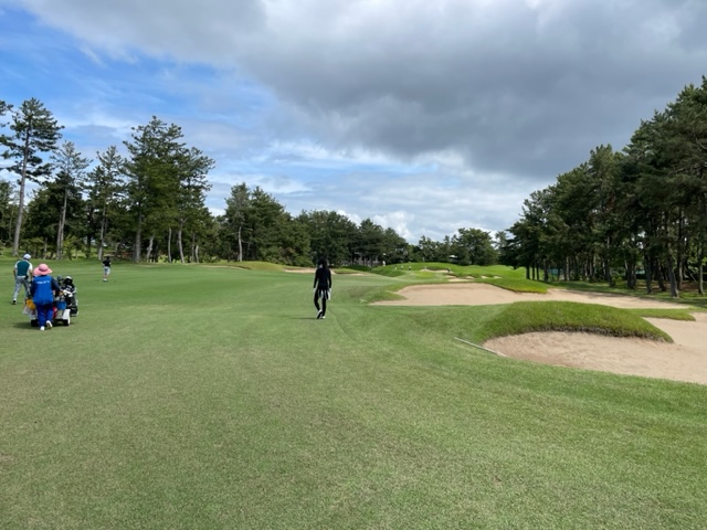 9番531yロングは、ドライバーは左ラフへ。3uで残り200y打ち上げへ。3wで打つも左手前。なんとか寄せてボギー。