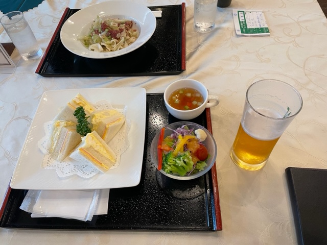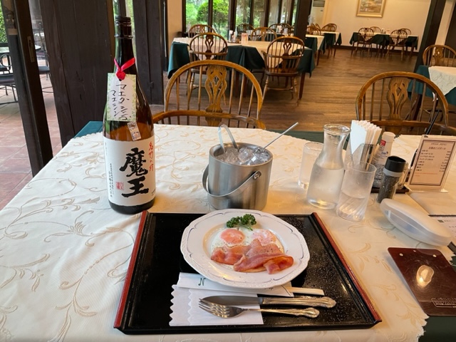 レストランでベーコンエッグと豚汁を食しながら、独りミーティングをしていますと、皆様が到着されました。どうも雨のようです。残念。
