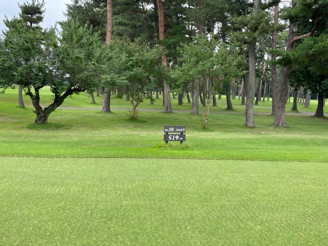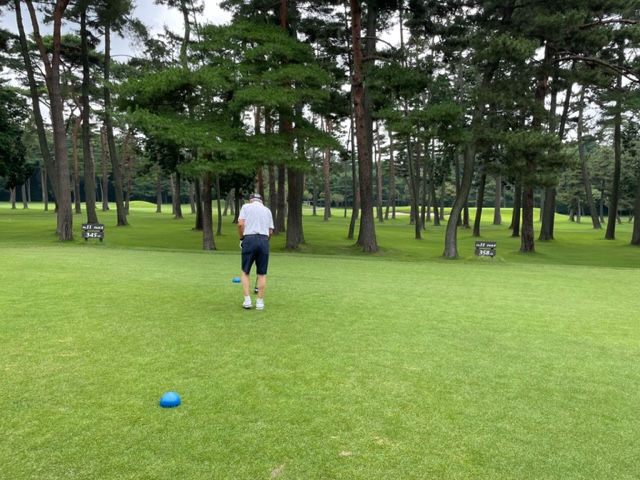 インはパー・ボギー・ダボ・ボギー・パー・ボギー・ボギー・トリ・パーの45回。2時間10分、1ホール空いてました。