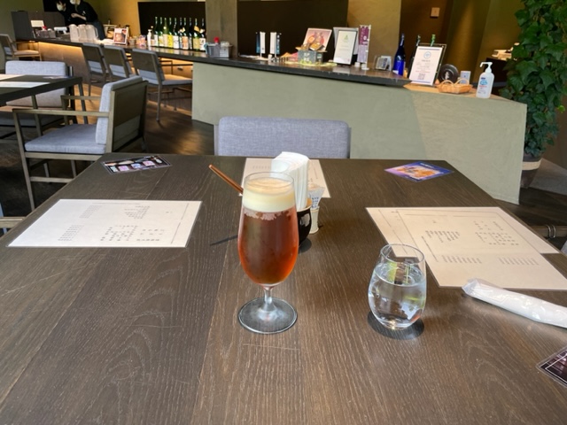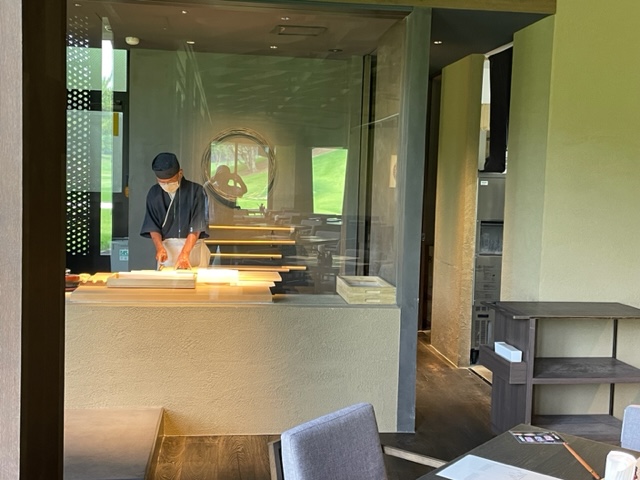 インに行くにはカートで10分ほど進行して10番に向かいます。到着後、宍戸庵を覗きますと10時からだそうですが、もしよかったらドリンクだけならどうぞ!と中に入れてくださいました。流石の応対です。宍戸の素晴らしさは施設もそうですが、人であります。教育であります。寛がせていただきました。