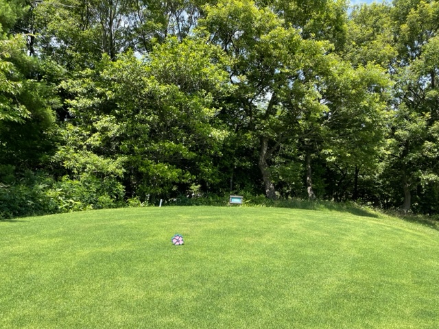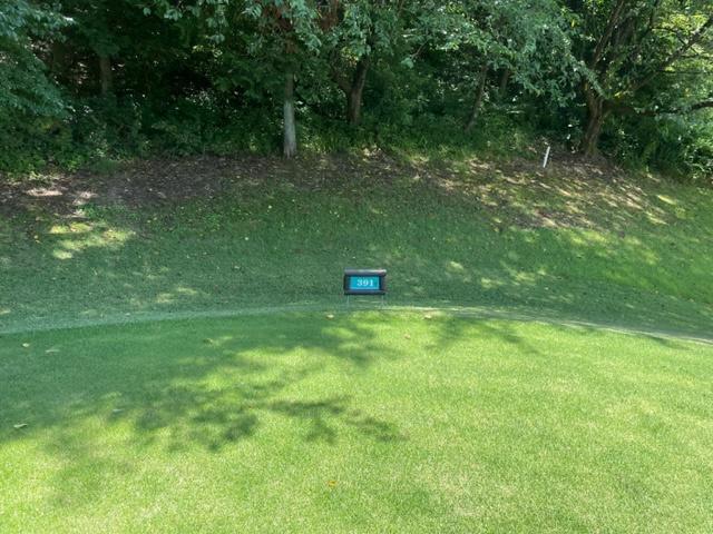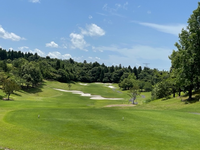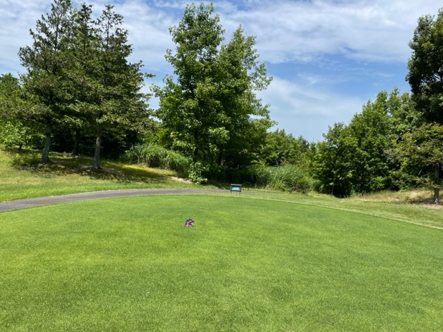 1番356yミドルは2オンから無難にパー。2番169yショートはナイス1オンからパー。3番545yロングは3オンから無難にパー。4番444yミドルは2オンできずボギー。5番562yロングは3オンから無難にパー。6番361yミドルは2オンから無難にパー。7番407yミドルは3オンからボギー。8番201yショートは1オンからパー。9番427yミドルは3オン。2mを入れて70台としたかったが入らずボギー。