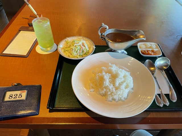 ランチはポークカレーとミニハムサラダとドジョウをいただく。幸せ。