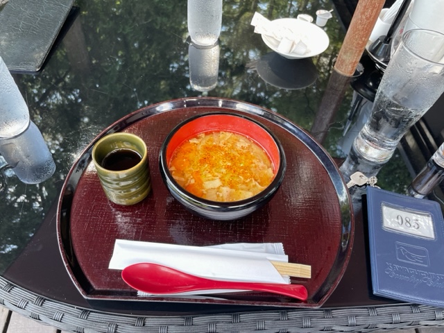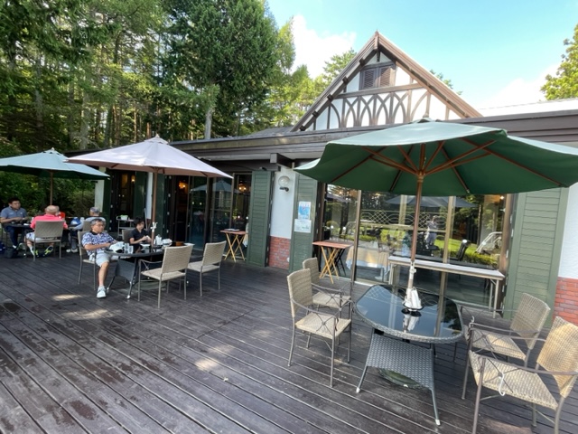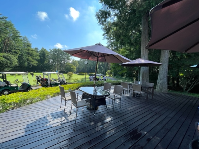 で、出発。テラスで焼酎タイム。マイボトルはちゃんと残っておりました。良かった。今年初登場でしたが、、、。どこかのゴルフ場では流されてましたから。あれはショックだったなー。