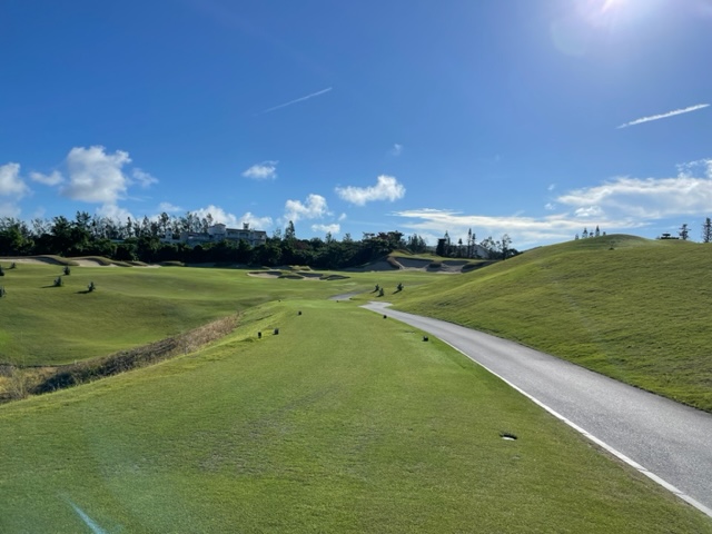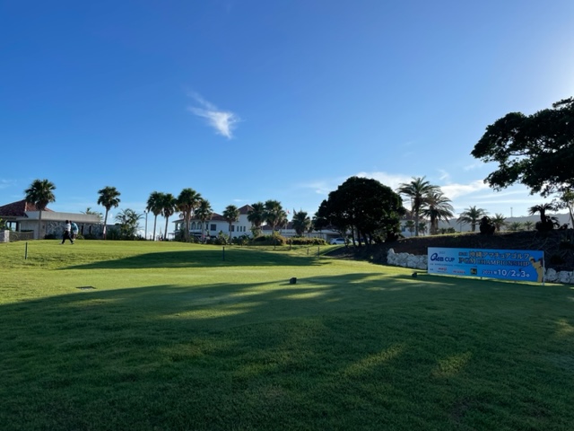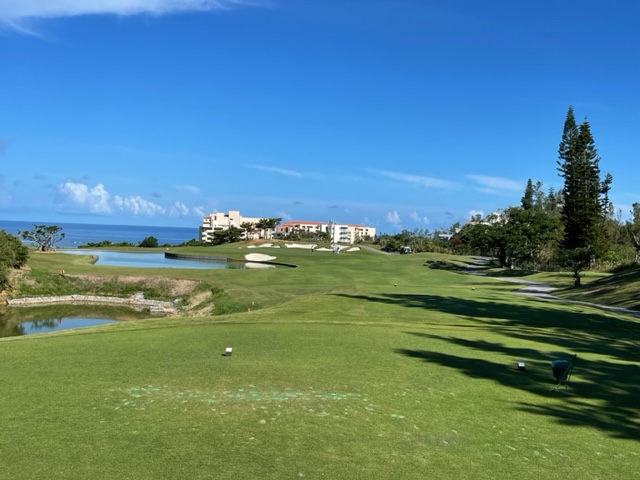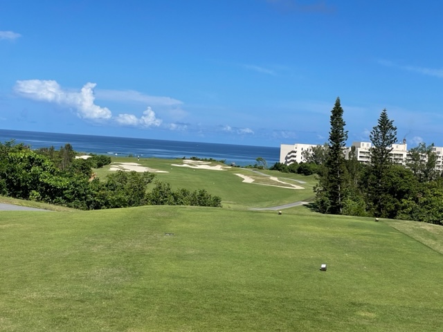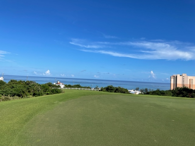PGM沖縄の感想・・・すごく賑わっています。また、国際色が豊かです。誰もが楽しめそうという雰囲気を感じます。全体的なメンテナンスはまずまずです。とてもゴージャスで眺めがよく、沖縄では上質のゴルフ場であると言えます。