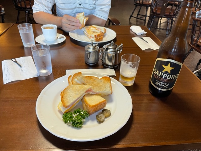 朝のバーに行き、いつものホットハムエッグサンドとサッポロ大瓶をいただく。で、M.Iさんからオムレツ半分もいただいたが、これがまた美味しいのなんのって。楽しい会話をしていると時間はあっという間に経過します。
