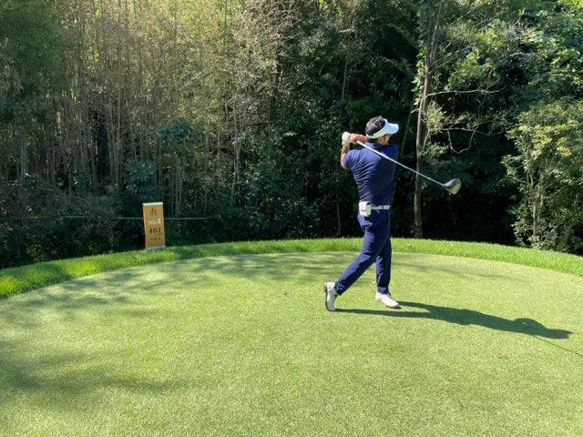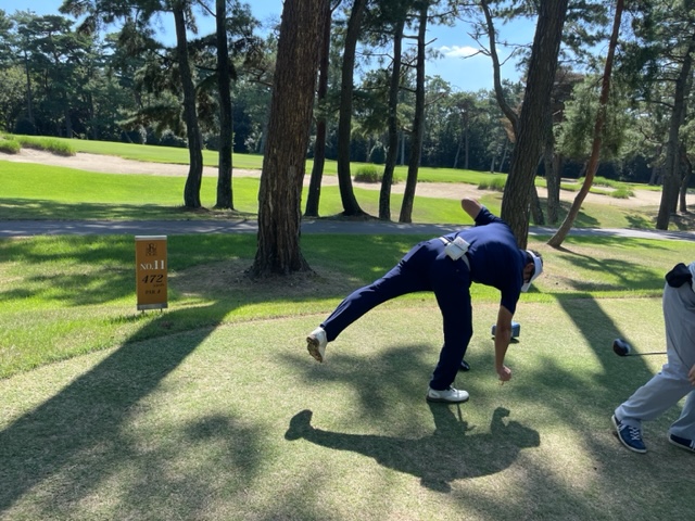 1番ロングは、1.2打は良かったが3打目の52度が左へ。も、なんとかパー発進。見事なパター力でA.Mさんが、また、ナイスアプで同じ歳の東京の縁の方であるK.Oさんもパー発進。