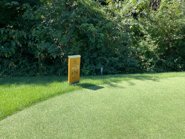 5番ショートは、5アイアンで打つもちょいと右に出てバンカーイン。ここから完璧のバンカーショットでパーゲット。A.Mさんもナイスアプでパー。見事な1オンからN.Yさんが無難にパー。