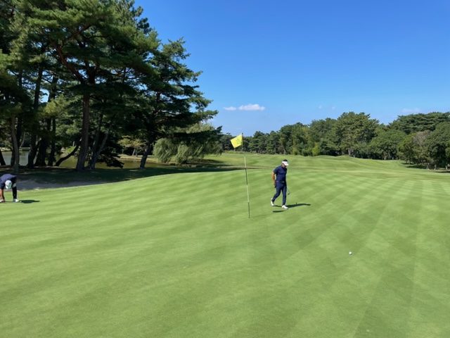 9番ロングは、見事4mに3オンしましたが、残念パー。