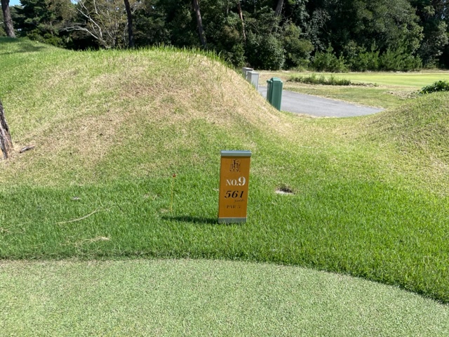 2番ミドルは、初球がOB。ボールがなく、K.Oさんにボールを借りて3打目を打つ。アホアホを繰り返し、ここは9となる。バーカである。