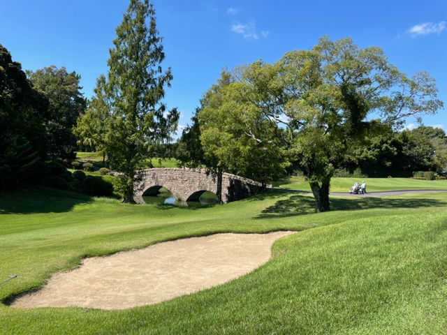 15番ロングは、ドライバーは右へ飛んで木に当たる。根性で越せ!と3wでバンカー越えを狙うも越えず。結局、4オンのボギー。A.Mさんがエッジ手前からのチップを完璧ショット!スルスルとカップイン。スゲー。バーディ奪取!流石は日本代表選手であらせられます。K.Oさんも3オンからナイスパー。