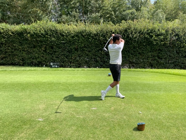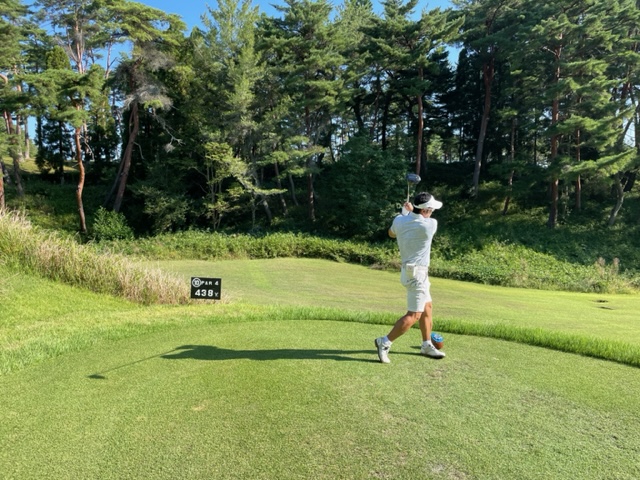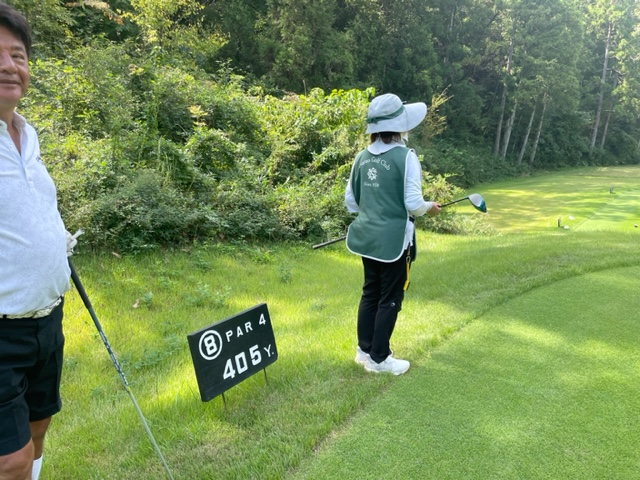 8番左ドッグのミドルは、しっかり2オンさせて無難にパー。ナイスアプでN.Yさんがパー。