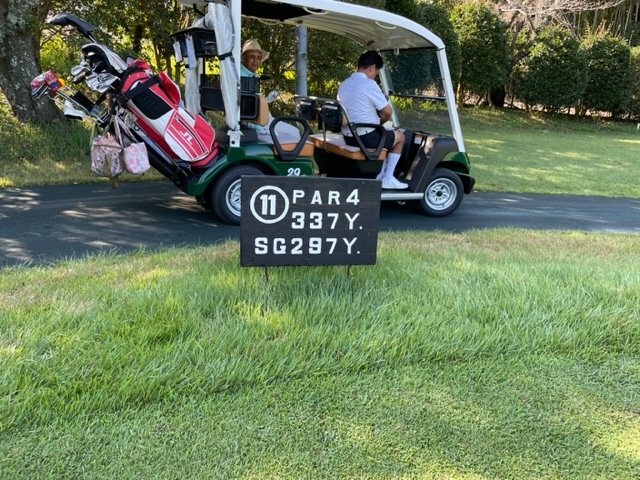 11番ミドルは、セカンドをバンカーイン。出ず。やっとのボギー。見事なアプから縁のN.Yさんがパー奪取。