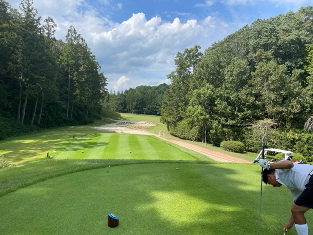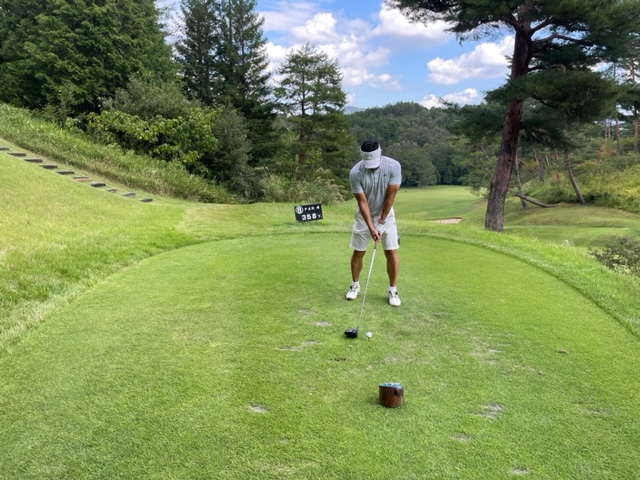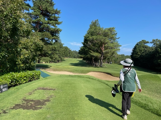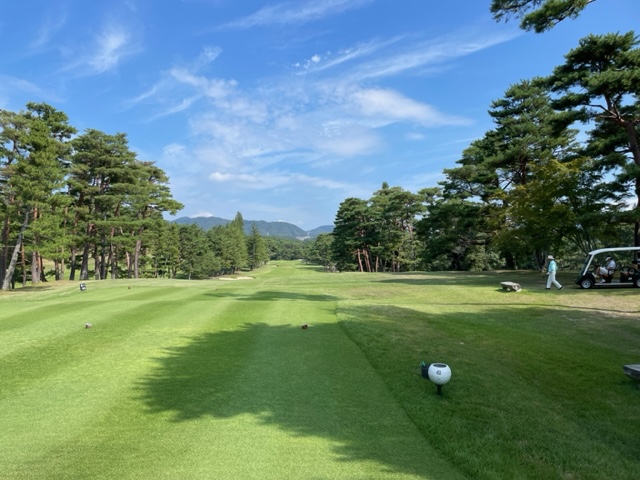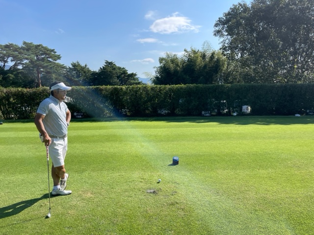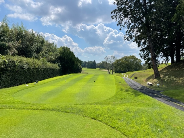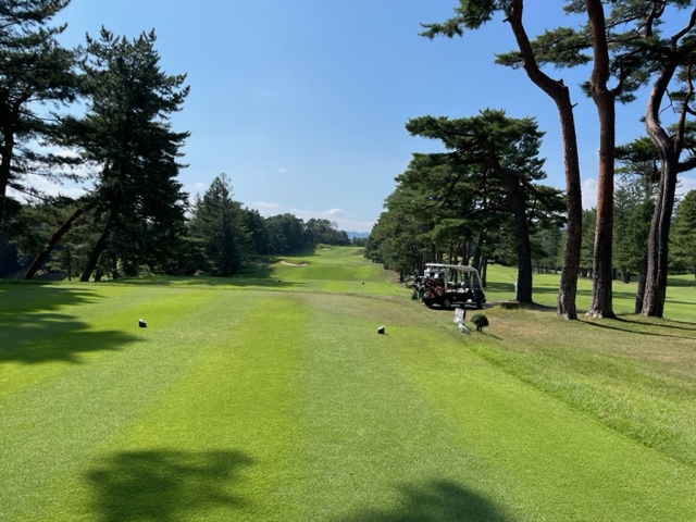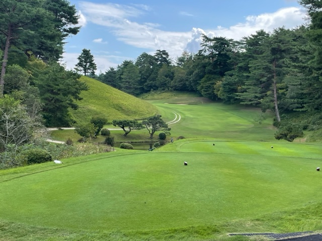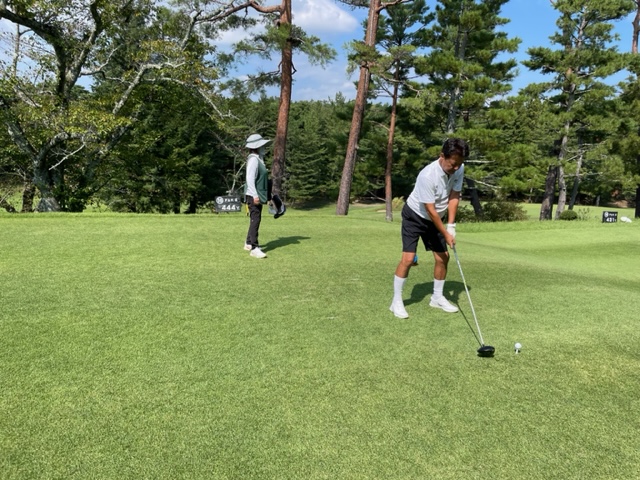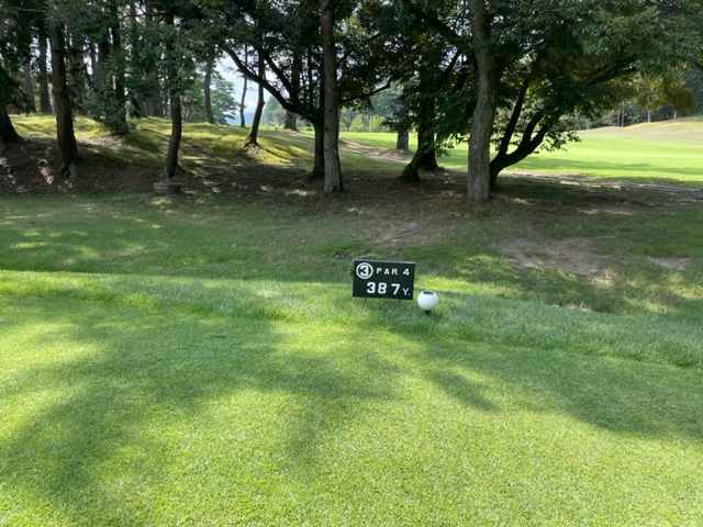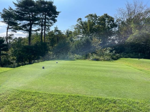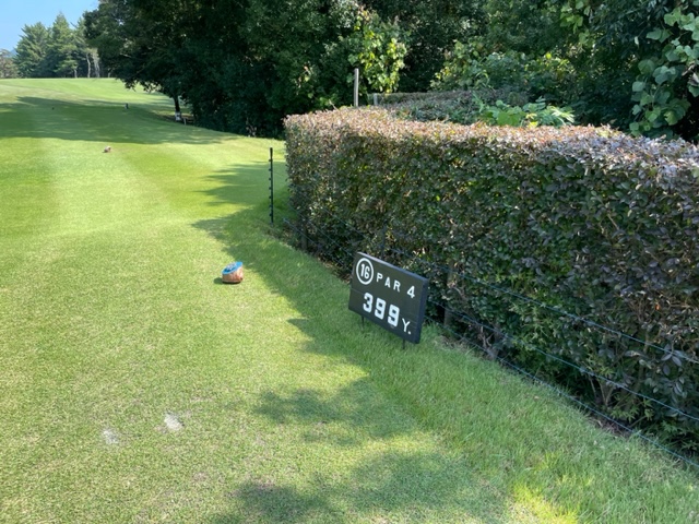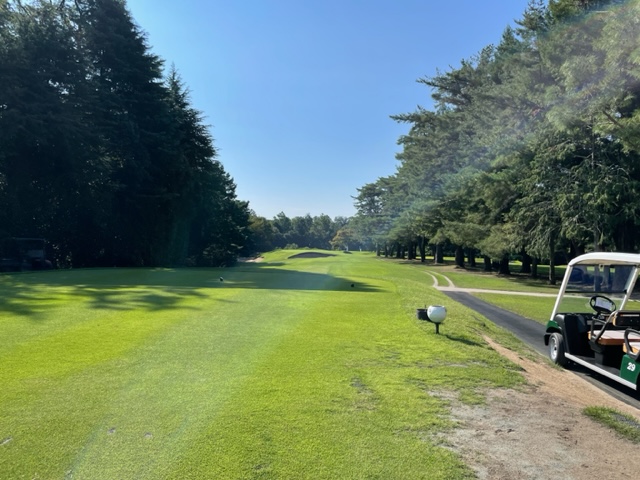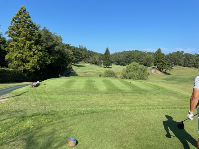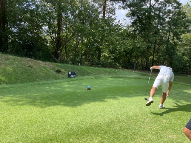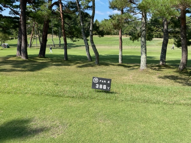 パターを転がしてインから。今日は青ティで進行します。ここ鳴尾はパー70ですから、アウトインともにパー35となります。