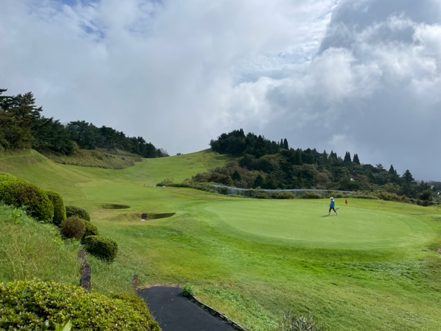 1番打ち下ろし180yショートは、7アイアンでなんとか1オン。も、グリーンが思ったよりも速くて2mオーバー。外して3パンチボギー。