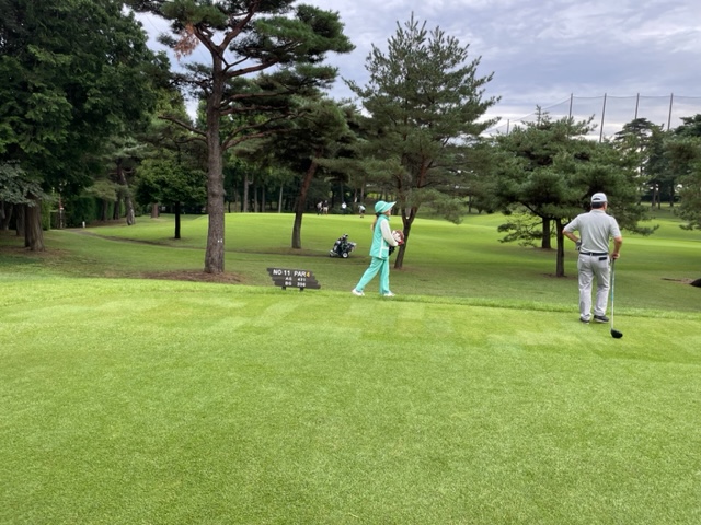 12番ショートは、ダボ。バンカーからナイスアウトのK.Kさんが楽々パー。スゲーバンカーショット。